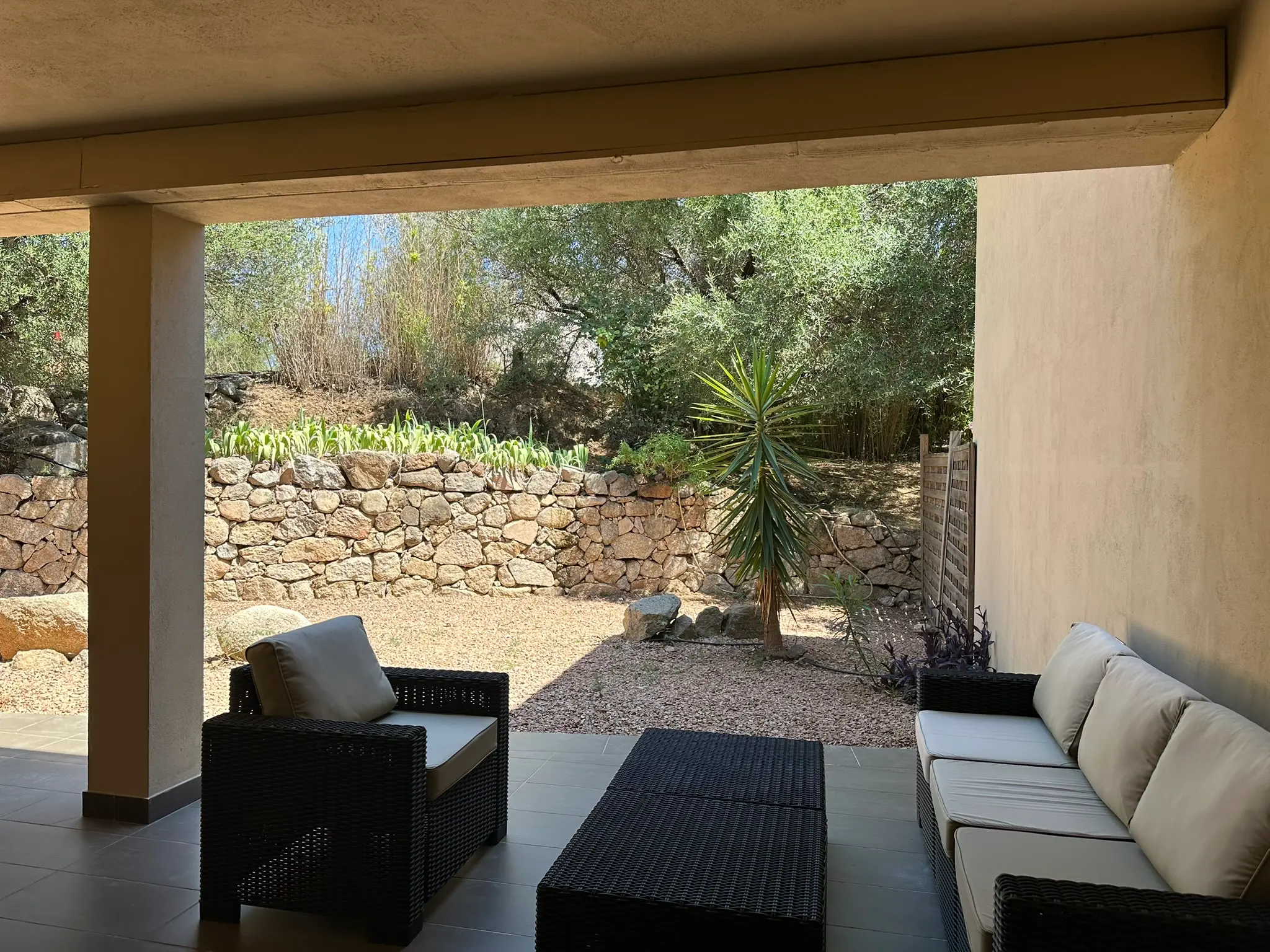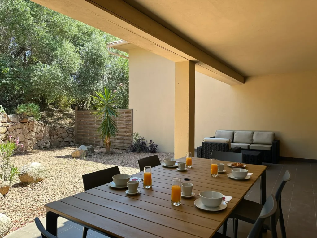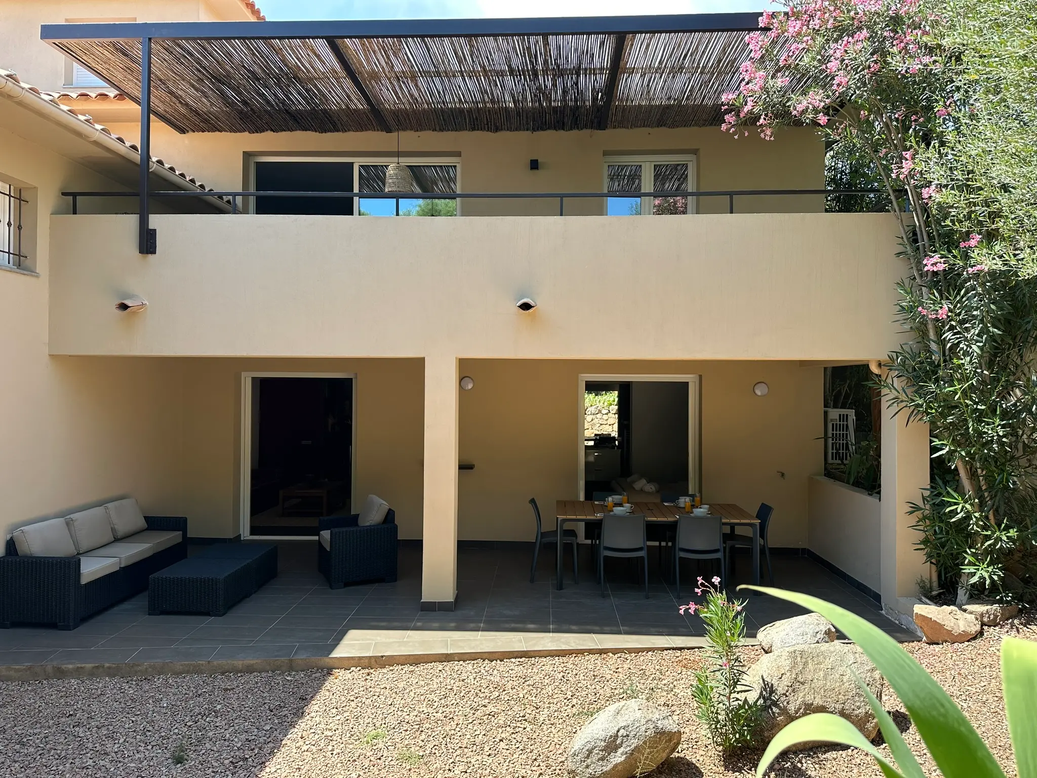 Terrasse privative de 25m2 en rez de jardin, salon extérieur, barbecue